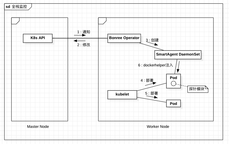 在此模式下,SmartAgent DaemonSet 将自动部署到 Kubernetes 工作节点上,实时监控容器创建并动态注入探针模块。